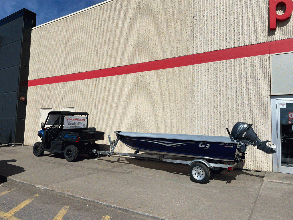 1st Prize -G3 Boat Guide V14 & Uforce 600 EPS Model SidexSide With Roof (Includes Yamaha F15SMHA with Fuel Tank and Marlon galvanized boat trailer. (Valued at $33,515.05)
